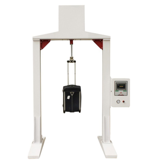 在箱包中加载规定的负重后,通过提把或完全打开的拉杆将箱包提起,在规定的行程内以一定的速度和自身所承载的重力往下俯冲,再通过弹簧对力的吸收和释放使箱包受到冲击和振荡,从而检验提把、拉杆、箱体(包体)的质量。